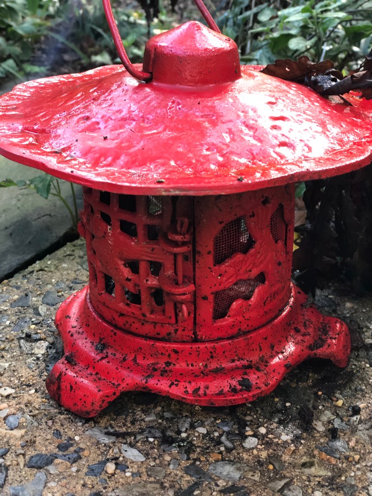 No one I have seen except for myself however, plants their Japanese cast iron lanterns red! That quirk belongs to me. It gives all of the green a fun little pop of color!