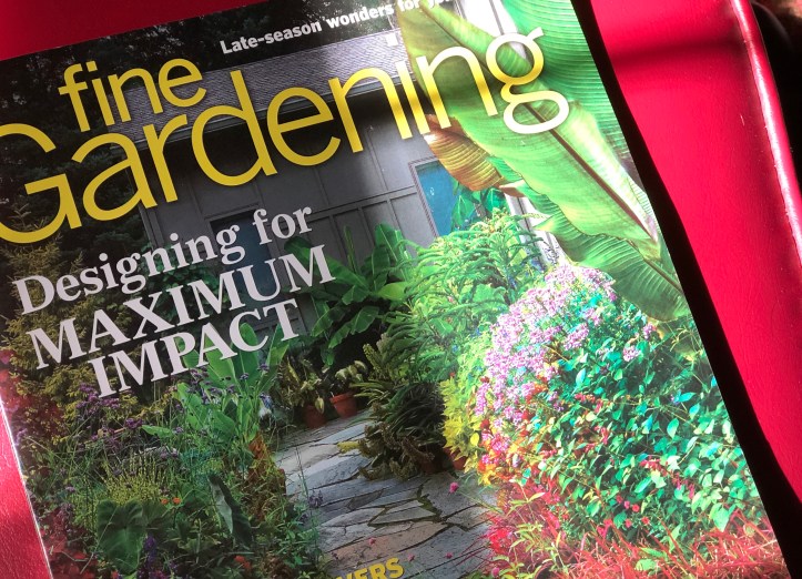 Oh Fine Gardening some days I laugh and wish accomplishing your front cover design were that easy! But deciding what goes where and planting? Takes time. And I swear, in the end, the plants tell me where they want to go.