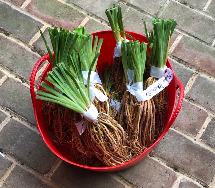 Mary, the owner, shipped them to me and they arrived late yesterday bare root, so into the ground today they went!