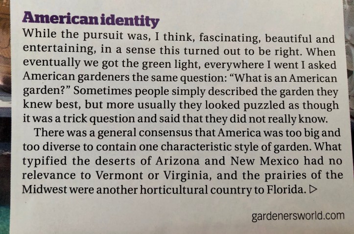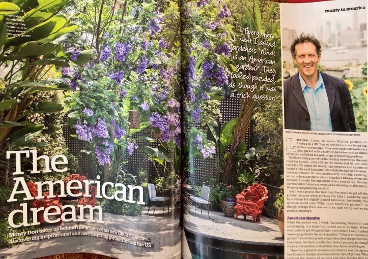 I opened my copy of the February, 2020 Gardeners’ World Magazine and there it was: more about Monty Don’s visit to the US last year.