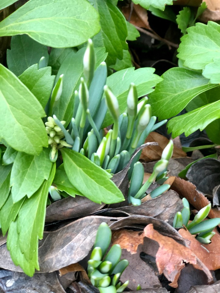 I also trimmed off the dead stuff off of some other things while I was at it and took stock of the garden. My bulbs are coming up. I have some daffodils in the very front actually have buds pushing up. The little snow drops and leucojum are getting ready to bloom. I even discovered a primrose!