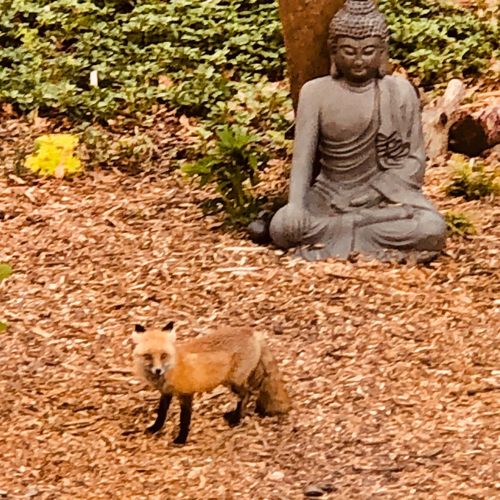 Not the best picture as it was just taken from upstairs inside because I don’t wish to startle the fox. But gardening means you’re also gardening with nature and you occasionally have furry visitors.