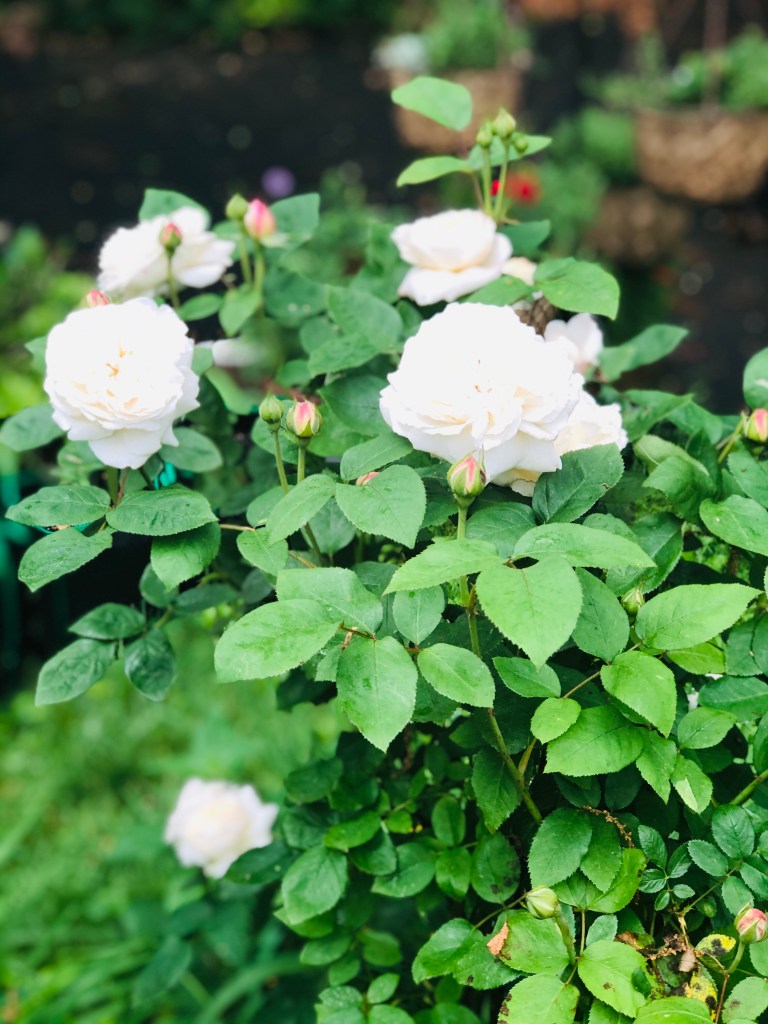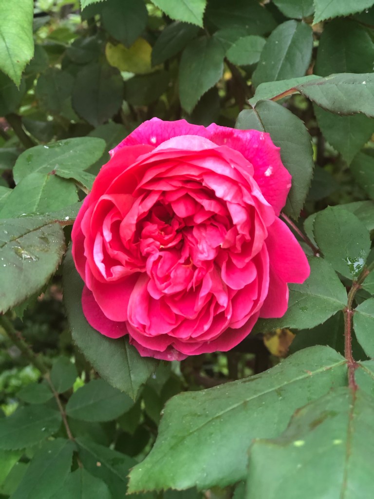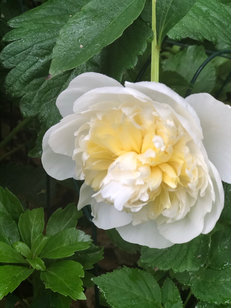It is gray and foggy and humid like pea soup. The roses have some black spot so they will get a little help from bacterial fungicide. But the roses and peonies still look amazing!! So enjoy and happy gardening!