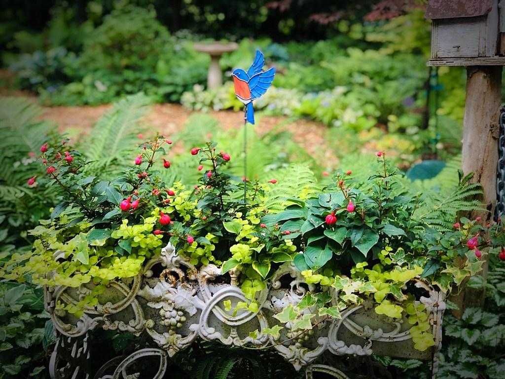 One thing I really like our pops of color. From my little old garden lanterns that I spray painted red (Brandywine View Antiques), to red impatiens, coleus, and fuschias. To this next year will be added the peonies I have planted this year.