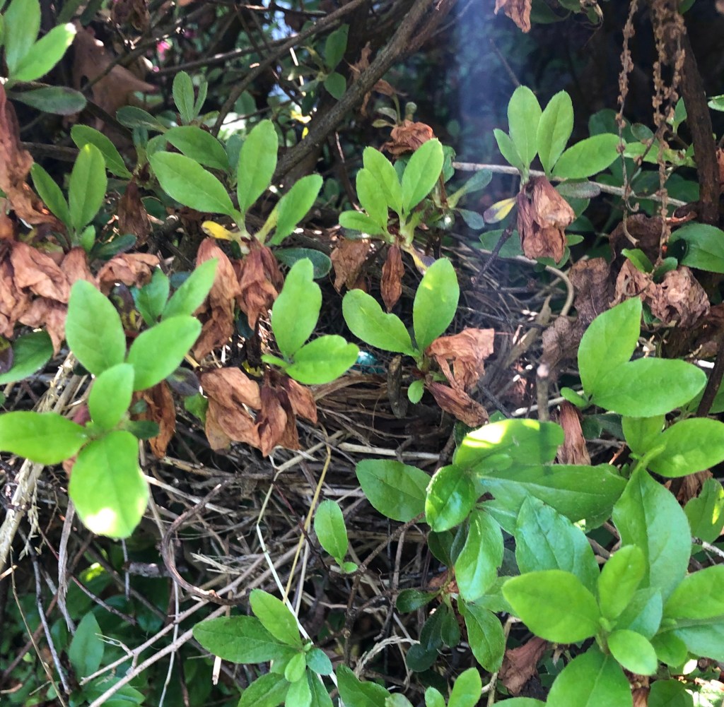 Now yesterday while they were doing some of the trimming I was trimming my azaleas. Then I had to stop trimming my azaleas because the giant azaleas in the front of the house are currently home to at least three cat bird nests. So trimming will have to wait until the babies are hatched and out of the nest.