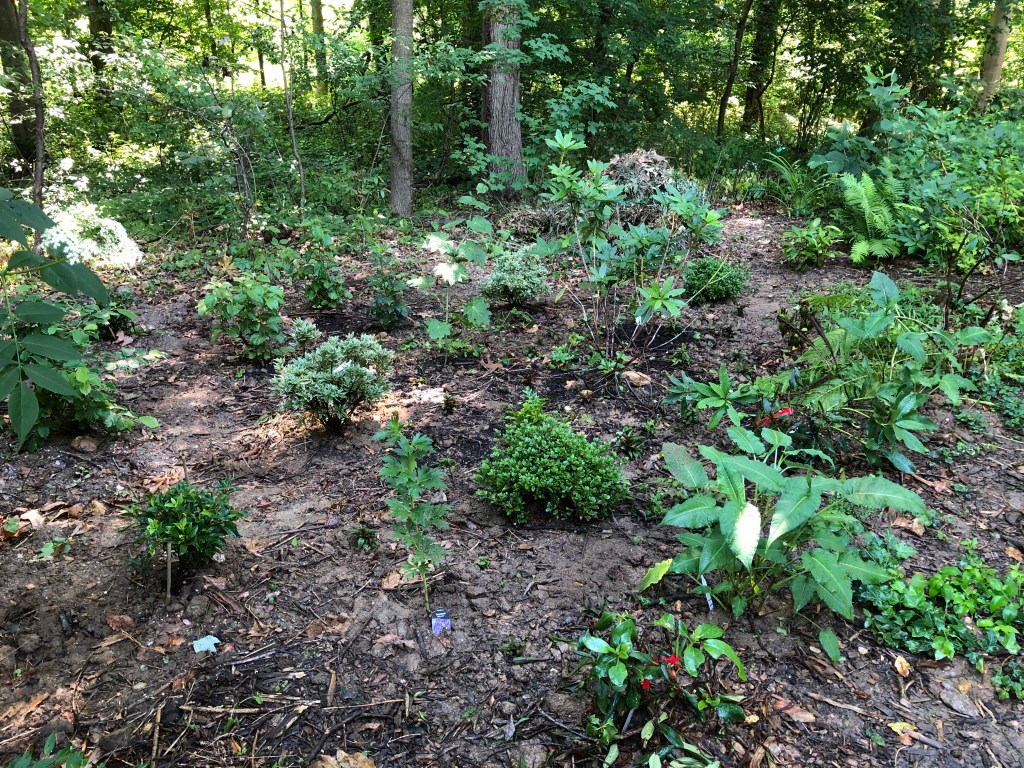 So I have written about this new edge of the woods garden. I call it the Derecho garden because the Derecho winds a few weeks ago created the opportunity to take this to a level I had wondered about, but figured would take years to evolve completely. I had started planting it last year after I took out a crazy amount of overgrown forsythia.