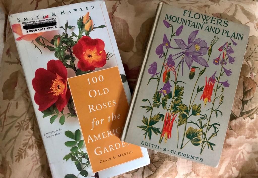 Also because it is so warm and I have to keep a little bit out of the sun I am going through my gardening magazines and gardening books. Today I am thumbing through a rose book and a very old antique book on wild and native flowers.