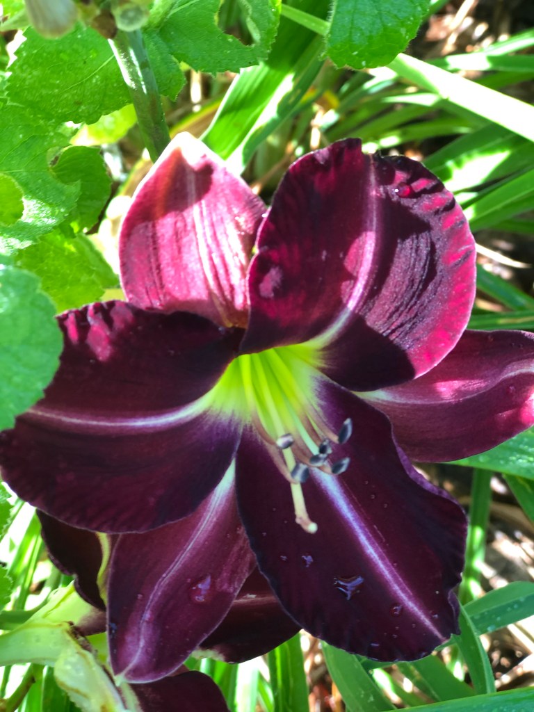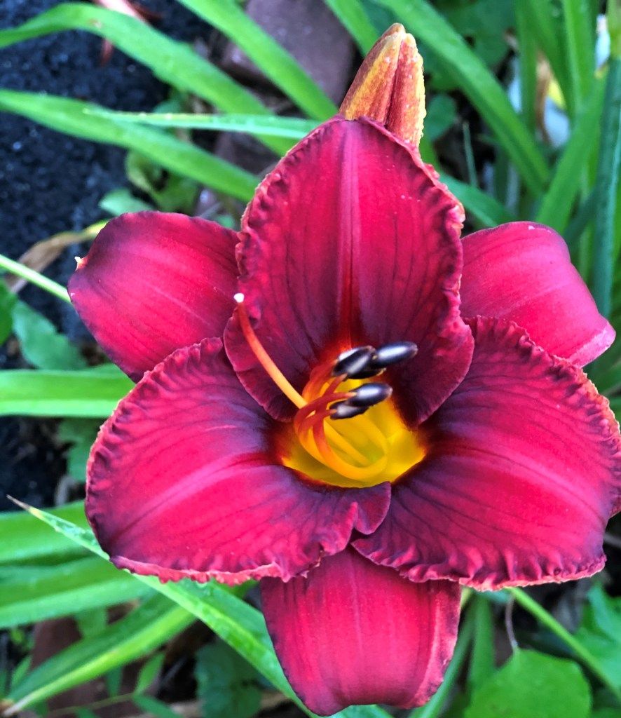 This morning started with moving hostas to accommodate my new bare root red daylilies from my friend Mary at Morning Star Daylilies in Woodstown, NJ. Yes bare root. Her plants are lovely and always arrive in impeccable condition. I have a thing about red daylilies. But not any shade of red. I like the deep dark velvety blue-red shades, not orange-red. They are shipped expediently in wet paper. When they arrive I soak them in water at least overnight in water and seaweed extract.