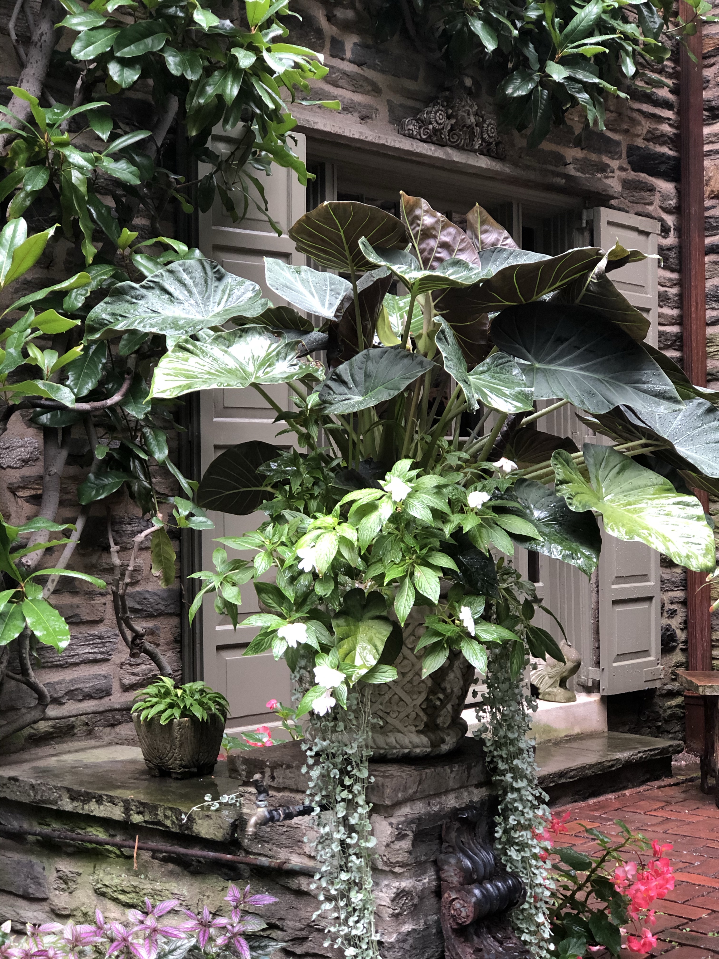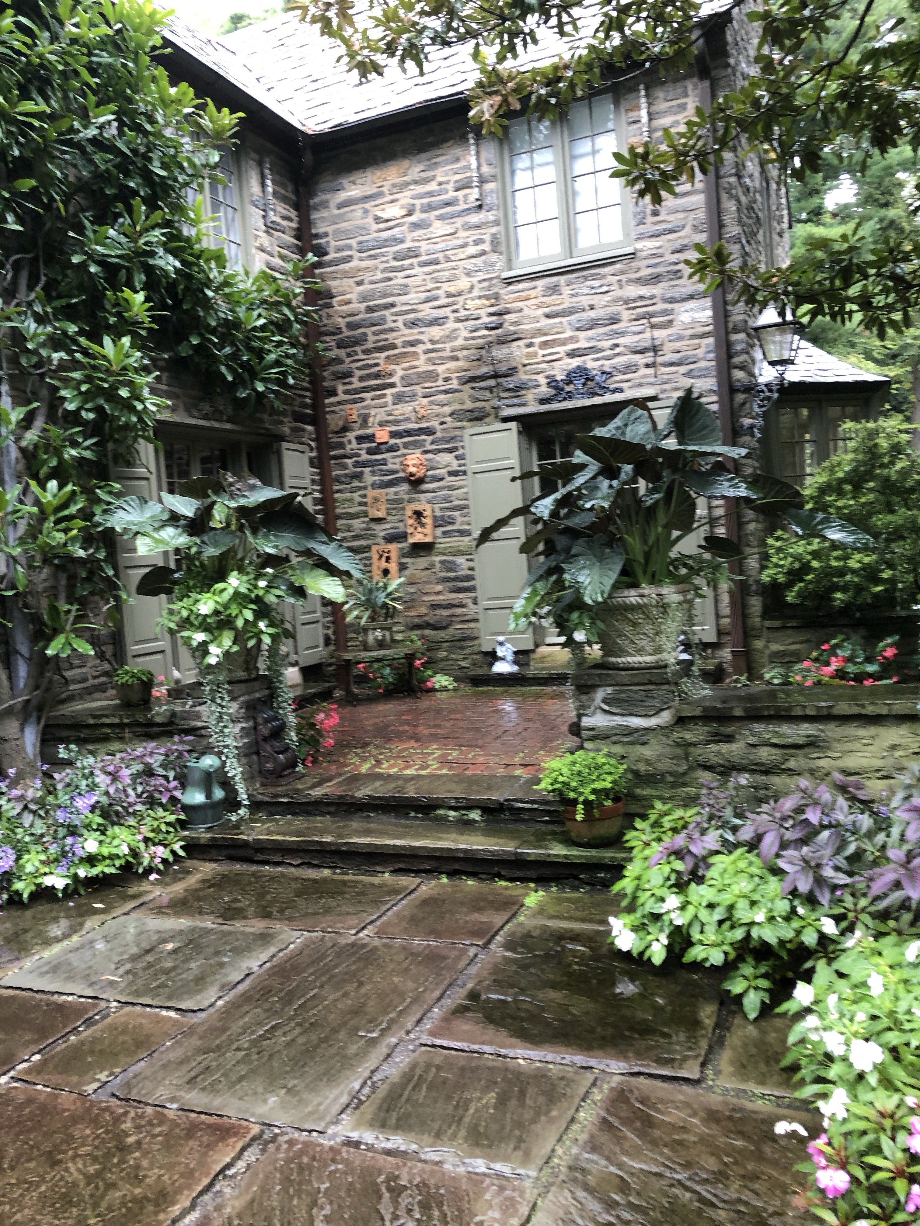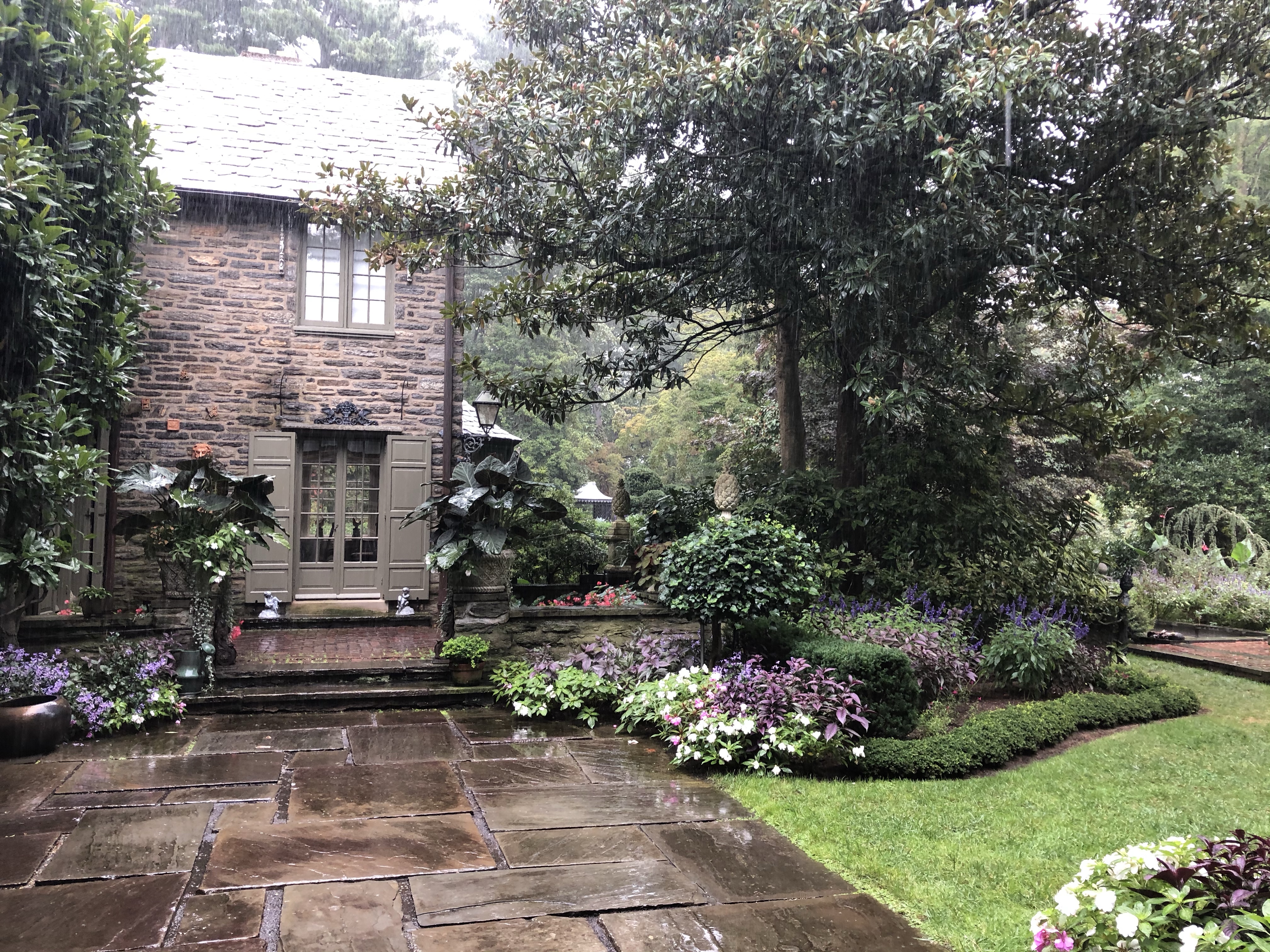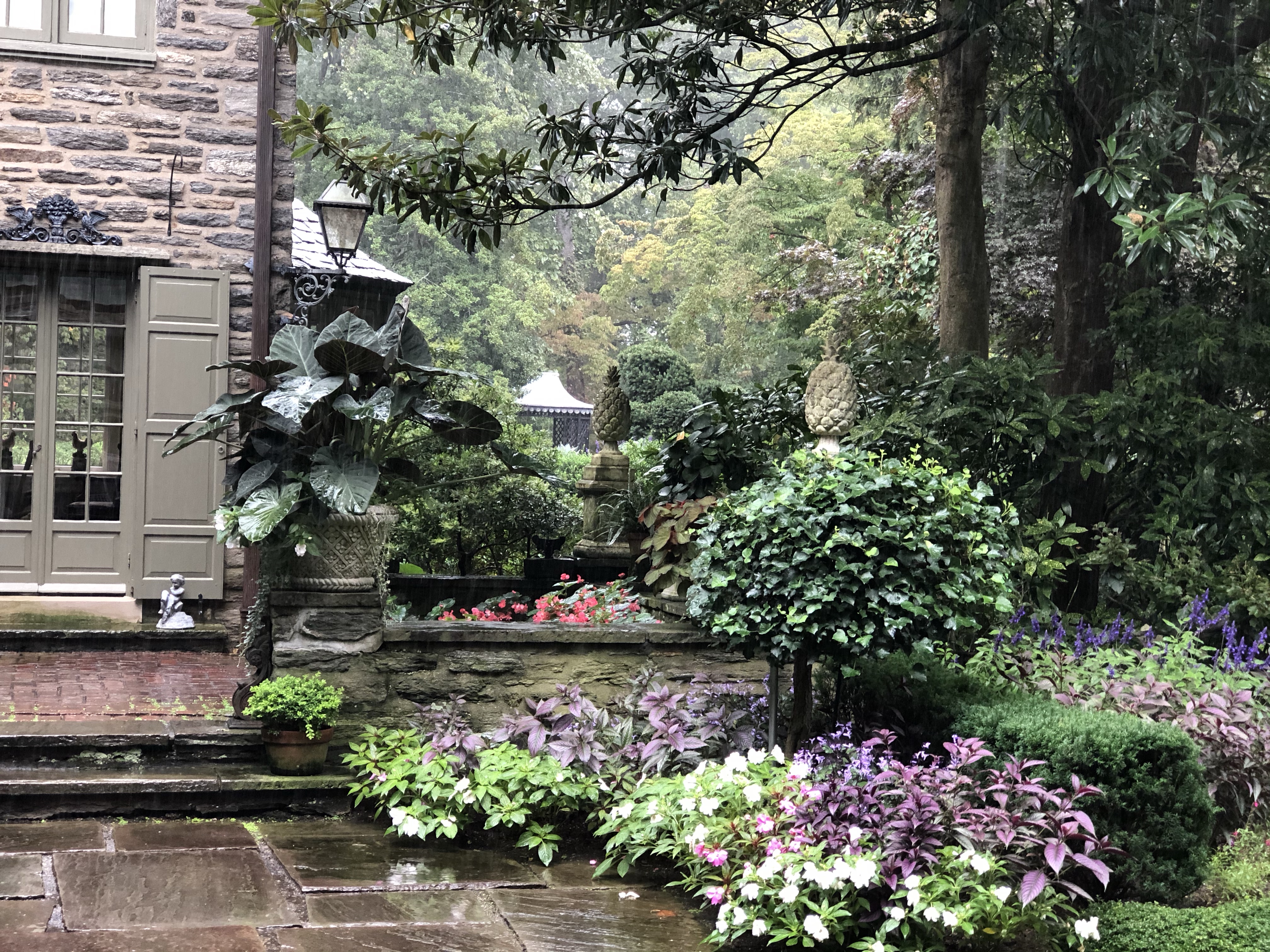 I did not get to wander all of the gardens today because not all of the areas were open to the public and it kept raining. For a while I took shelter in the glass house conservatory off the back terrace. Sadly I noticed there were a few leaks in the glass house conservatory, I hope they get fixed.