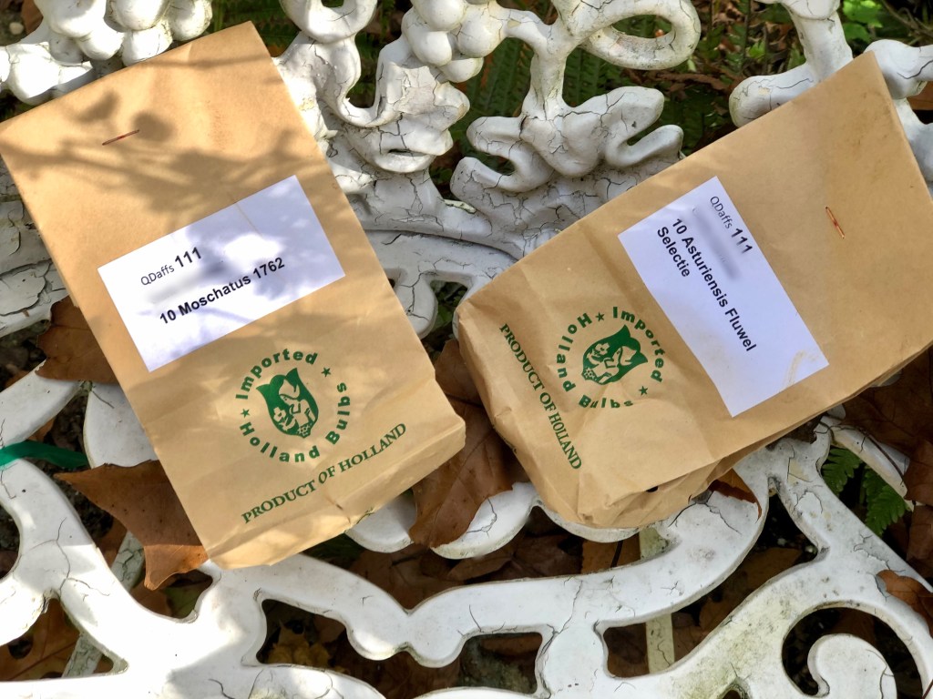 My bulb order has not arrived yet, so it will be a challenge to get them all planted before the ground freezes! Hope we get some nice days. Have not even begun trimming all the frost-killed plants in any of the gardens, so there’s plenty to do! But, it’s raining today so what to do? I just ordered more bulbs!
