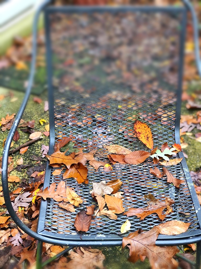 The leaves of the oak trees in our woods are starting to rain down from the tippy tops of these very tall trees. It’s actually kind of special to sit and watch them waft through the air as they come to ground.