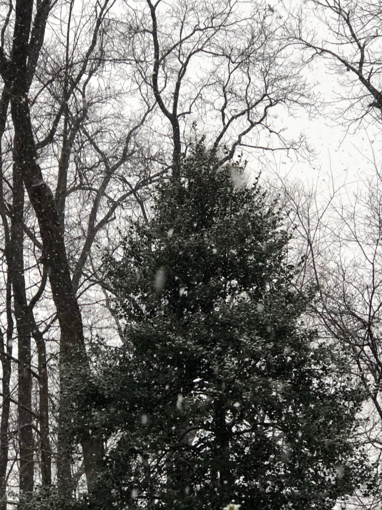 The wooly worms never lie! It’s snowing! (I saw a fuzzy black caterpillar yesterday which German friends of my mother’s called “wooly worms” and they said every time we saw one it meant snow.)