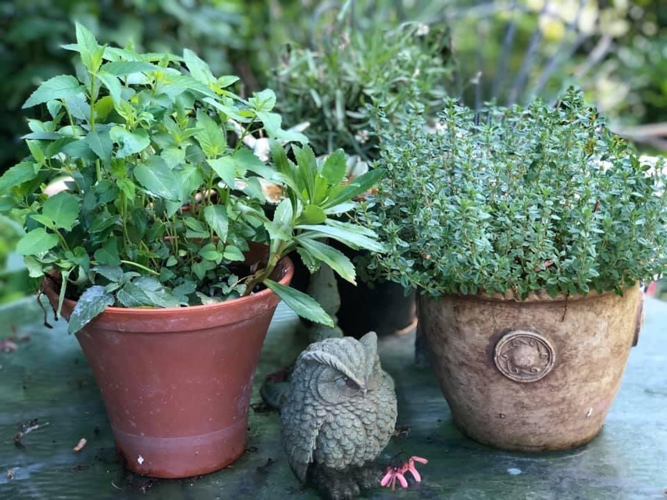 I take my cues from British and European gardeners. Perennials and herbs along with annuals. People do not realize you can plant almost anything in a pot. I love Hostas in pots, have had Japanese Maples and even roses in big pots in gardens past.