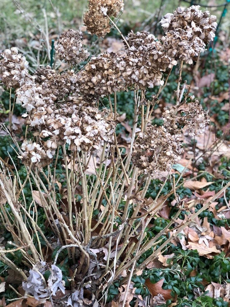 This morning (early) before the snow started, I did peek around….in my nightgown and a down jacket. Looking at the winter garden and dreaming and mentally planning for spring.