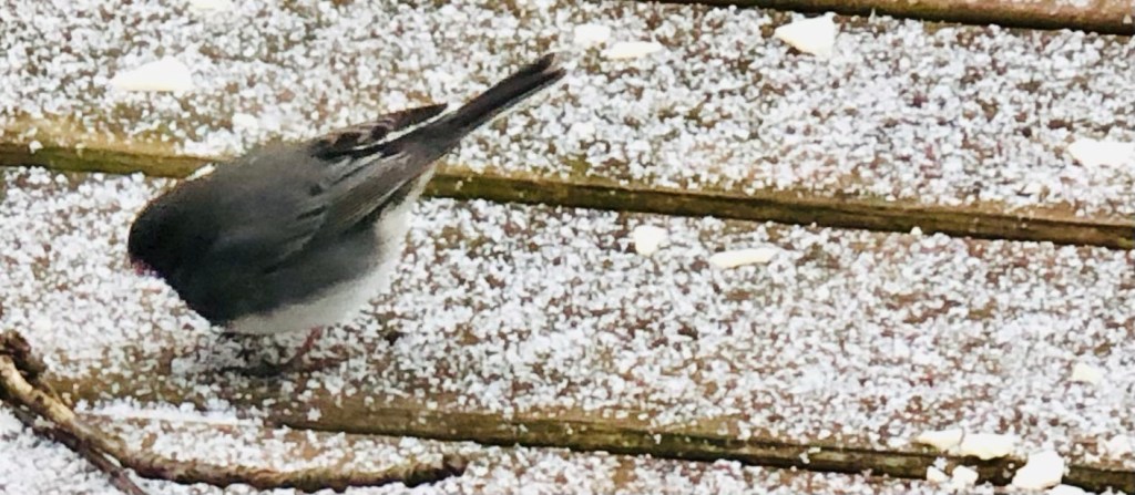 Meanwhile, outside before the day went to dusk, the birds scurried to fill up on food in the cold. Some of my favorites today were the juncos.