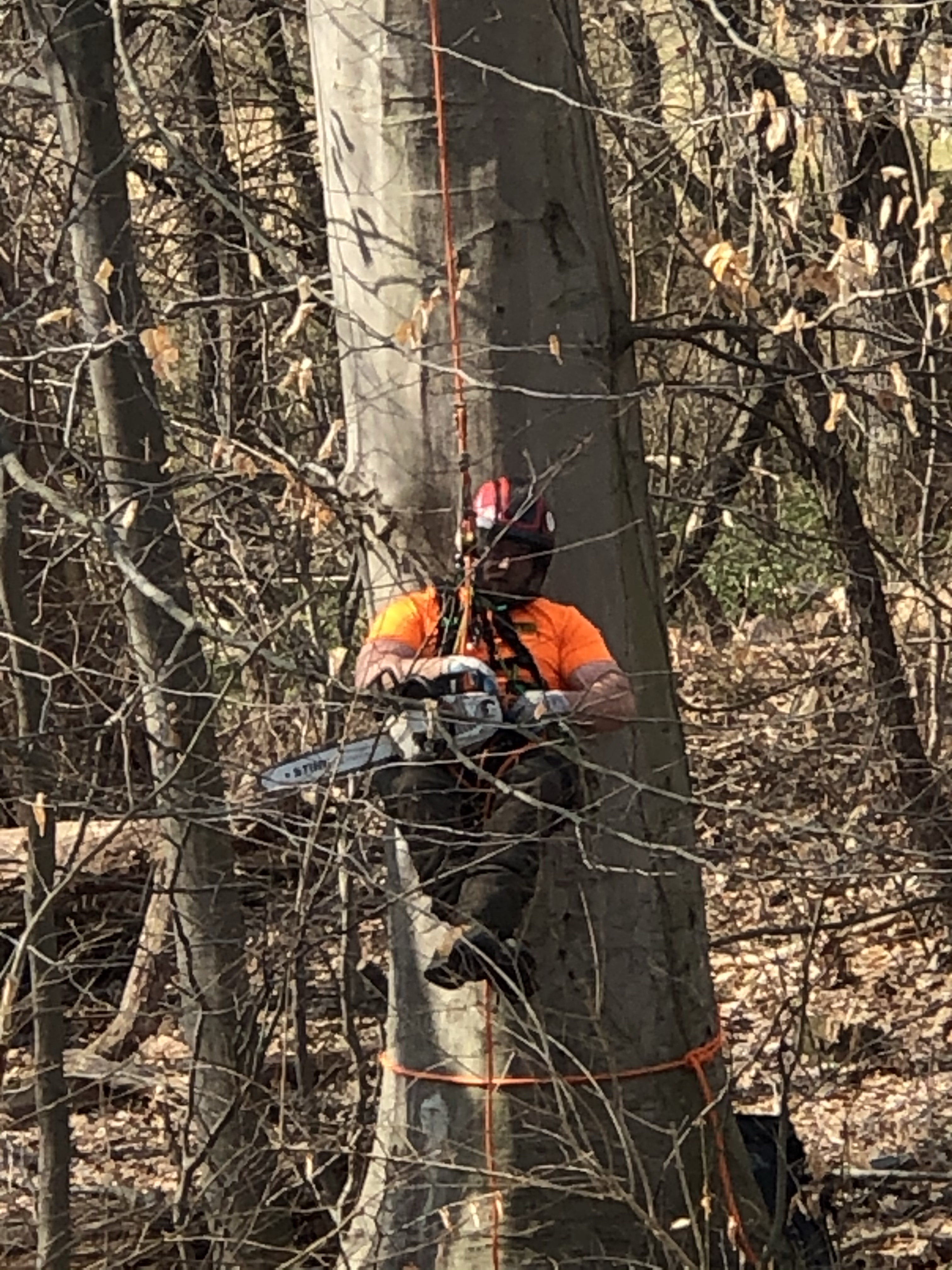 Today we will do the trimming, and then as it warms up they will be back to do the tree health aspect. We have Ash that need to be treated, and many trees for spotted lantern fly and other things.