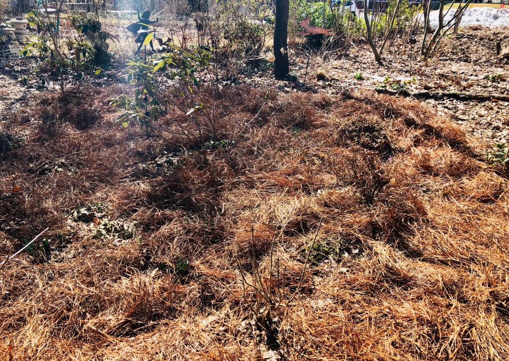 I mean who would ever think mulching could be fun??? This was fun!! Perennials and bulbs will be able to just grow up through the pine straw mulch.
