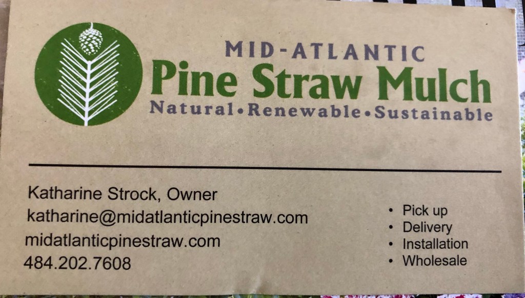 So this morning my inaugural order of pine straw mulch arrived. It came from Mid Atlantic Pine Straw Mulch. It was delivered and stacked neatly exactly where I asked.