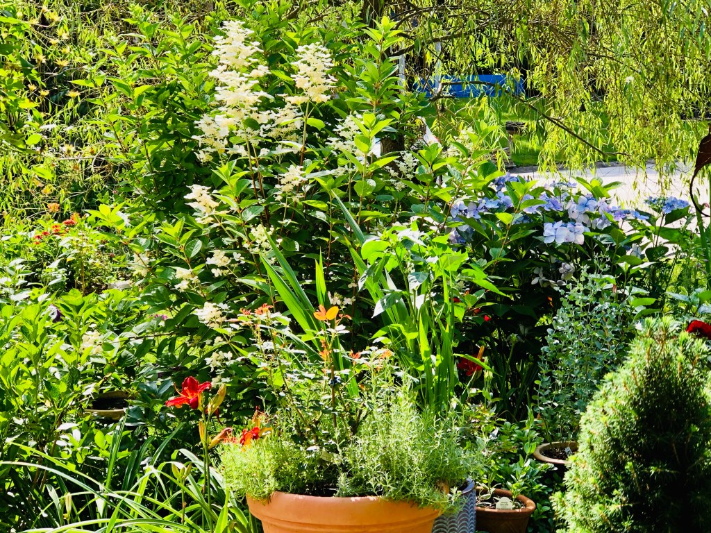 Yesterday I did some deadheading and gave the Lime Ricky hydrangea a haircut. Lime Ricky blooms on new wood so it won’t mind. Besides it was taking up too much real estate on a walkway.