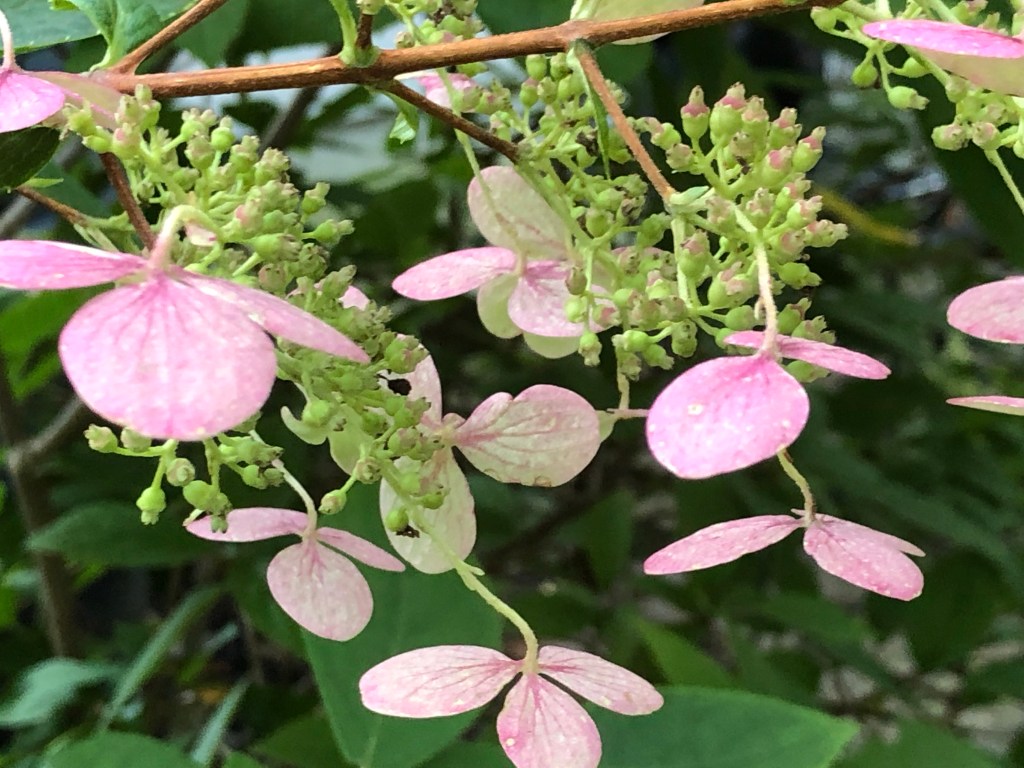 The hydrangeas are starting to get their fall tint to their blooms. All the white hydrangeas are getting a pinkish tinge.
