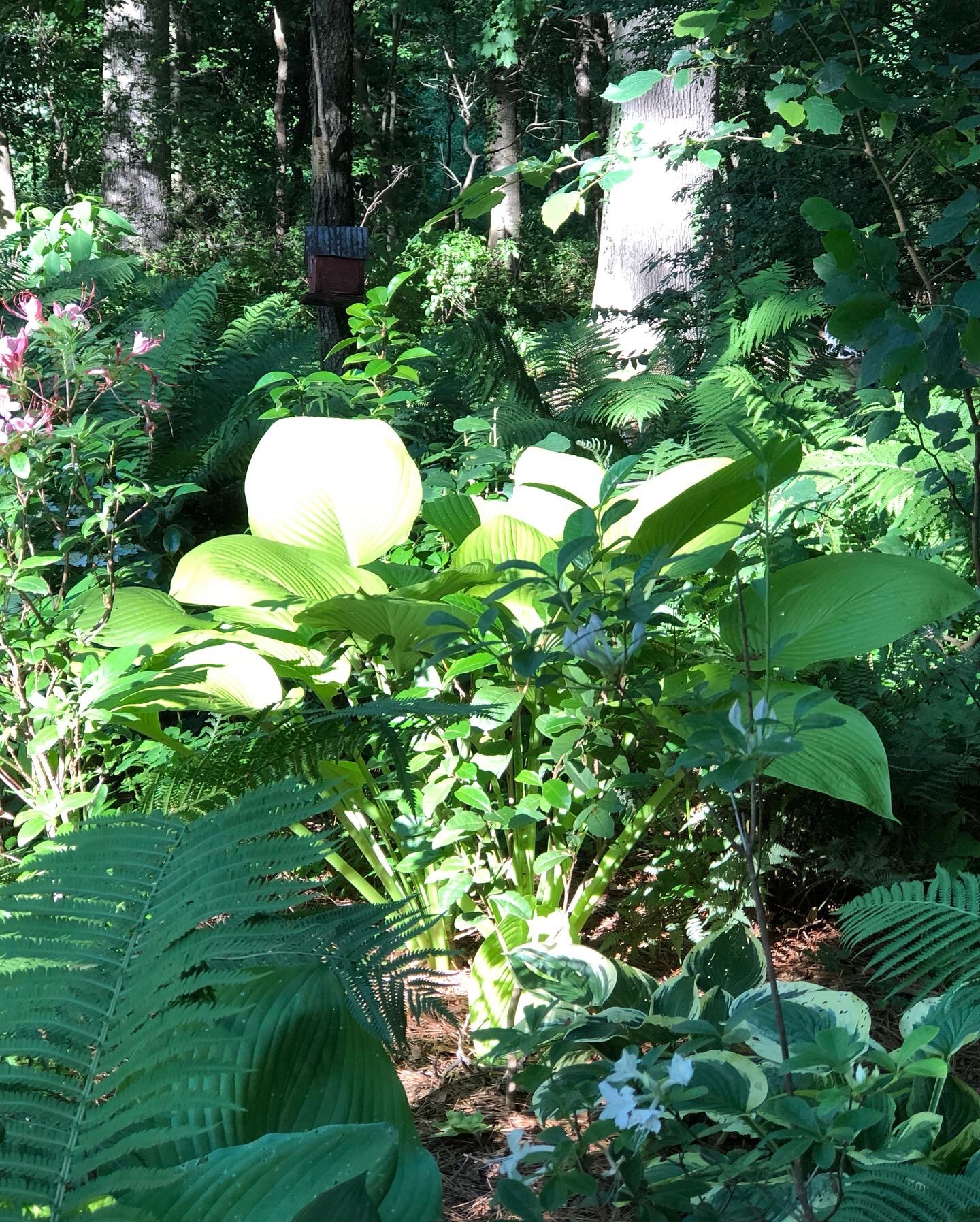 My big Mama Oak who is coming down at the end of the summer is struggling now. That makes me sad. I love that tree. I keep wondering how the light will change on part of the garden after she comes down.