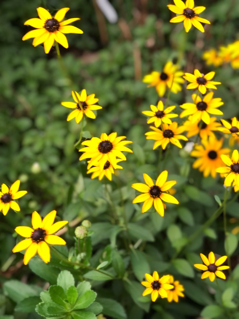 This week all of a sudden it started to look more like fall. But new flushes of roses, Montauk/Nippon daisies, brown and black eyed Susans, and sedum.