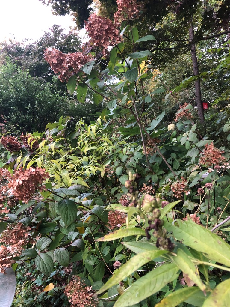 So I had ordered these really cool mountain hydrangea (Mountain Mania) and a pair of witch hazels (Hamamelis vernalis ‘Amethyst’ and Hamamelis virginiana ‘Mohonk Red’.) I also had a mystery hydrangea I had rooted. The mystery is which hydrangea did I root? I am terrible at propagating and I had tried a bunch and one took. So it’s a mystery.