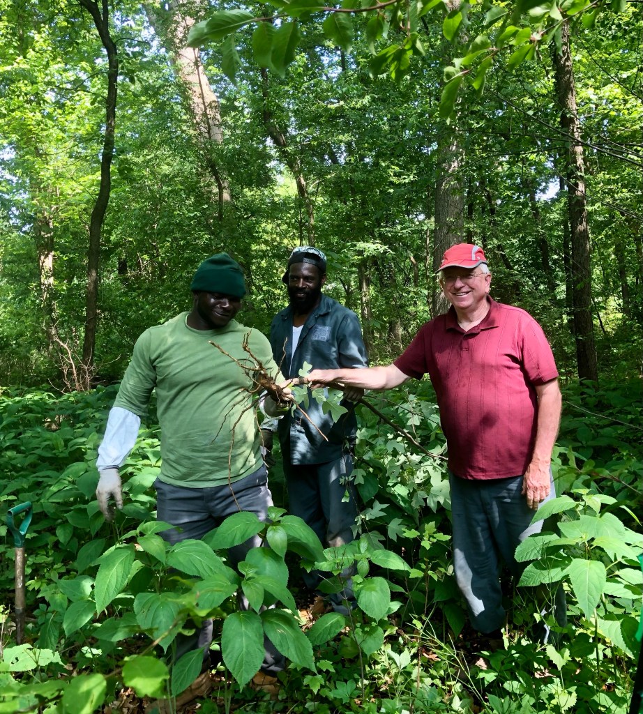 So Umar and his crew returned Saturday afternoon in the blistering heat and did an amazing job! They removed more poison ivy then I knew I still had, bittersweet, dog rose, tulip poplar saplings I didn’t want, garlic mustard, bishops weed/gout weed and more. I am truly grateful. They also take good care with my plantings, which is important to note.