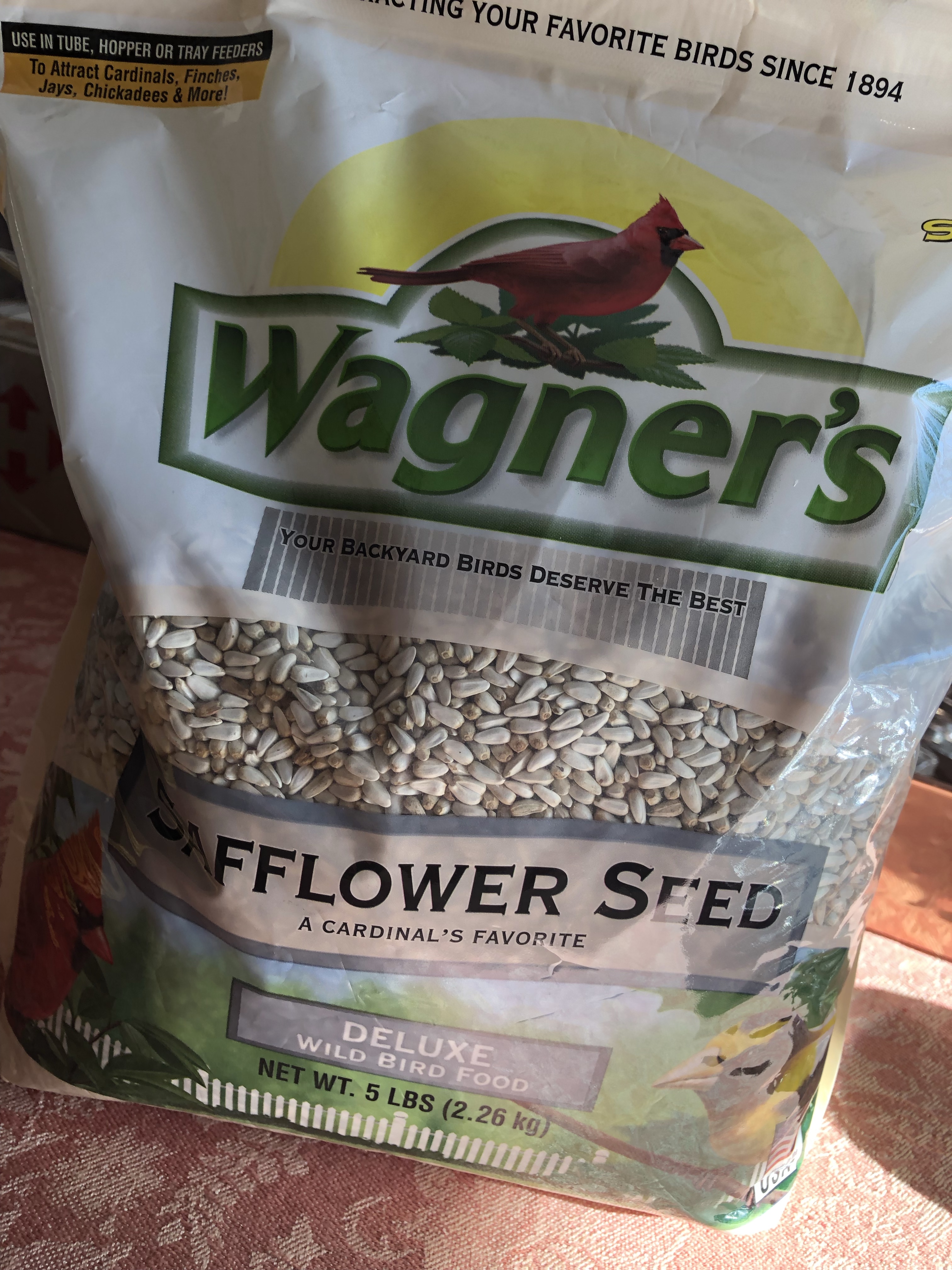 For the other birds my husband keeps the feeders full of black oil sunflower seed. However, I also give them something extra, and it’s something the ground birds especially love: safflower seed. It’s something you use in tree feeders or are you put out in a saucer, or as you see in the little video above I also just put it out on the frozen patio table. A bonus with safflower seed is squirrels do not like to eat it, so the birds get it all.
