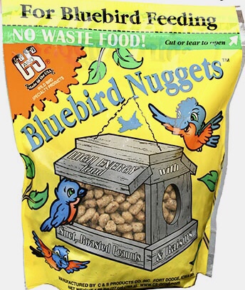 I feed blue bird food all year round because I now have two mated pairs of resident bluebirds. During the warmer weather and regular garden growing season I feed them those freeze dried mealy worms that chickens also love. But during the winter I feed them this bluebird food that are little pellets (suet nuggets basically) and it’s no waste etc. Blue Jays and woodpeckers also love the winter blue bird food.