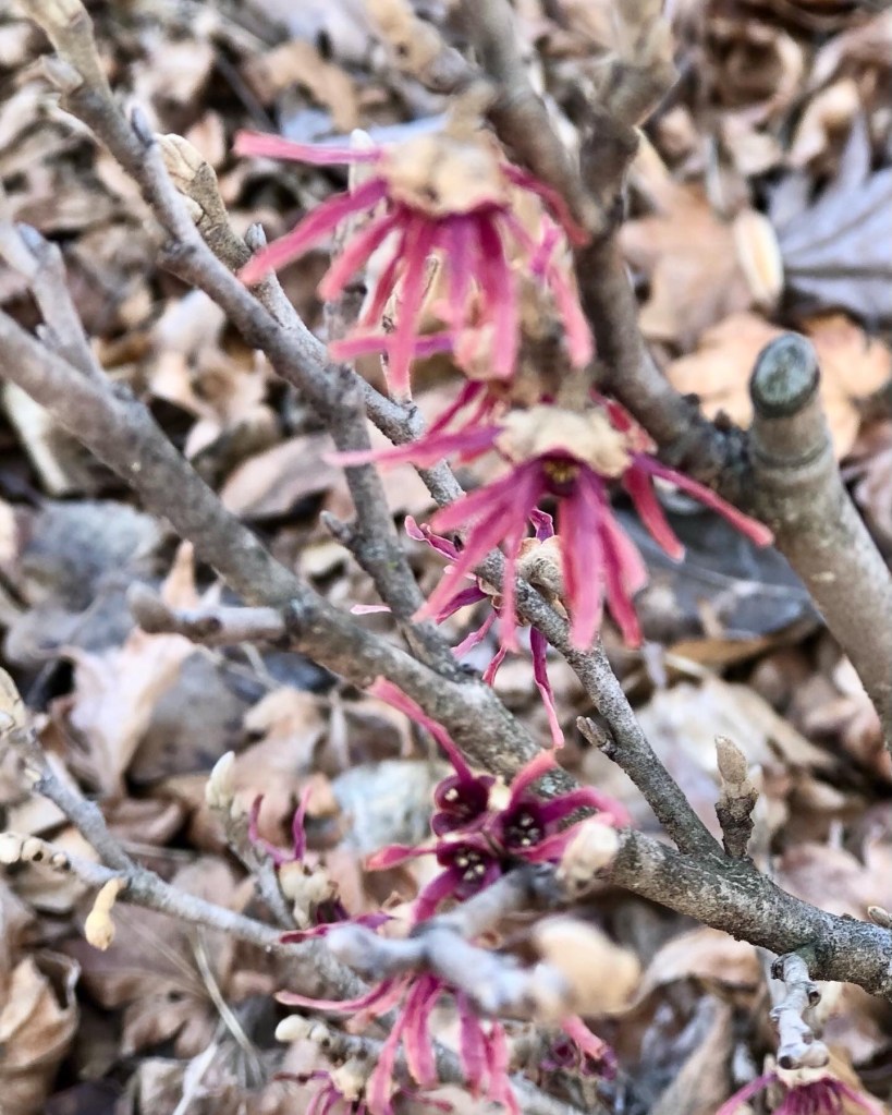 Anyway, also some other baby witchhazels are blooming now, and every day in the weird weather I see signs of a changing season only a lot of people think we are in for a whopper of a March.