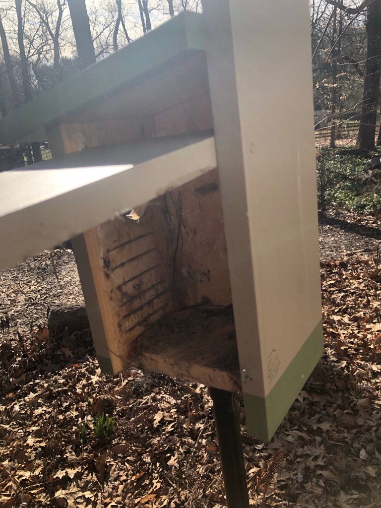February also means that it is time to clean out the birdhouses. Wear gloves and wash your hands well afterwards. But birds are a big part of our gardens, so we have to make sure their homes are in tiptop shape every spring. And when I have waited past February to clean them out, I end up having them nest on the old nest.