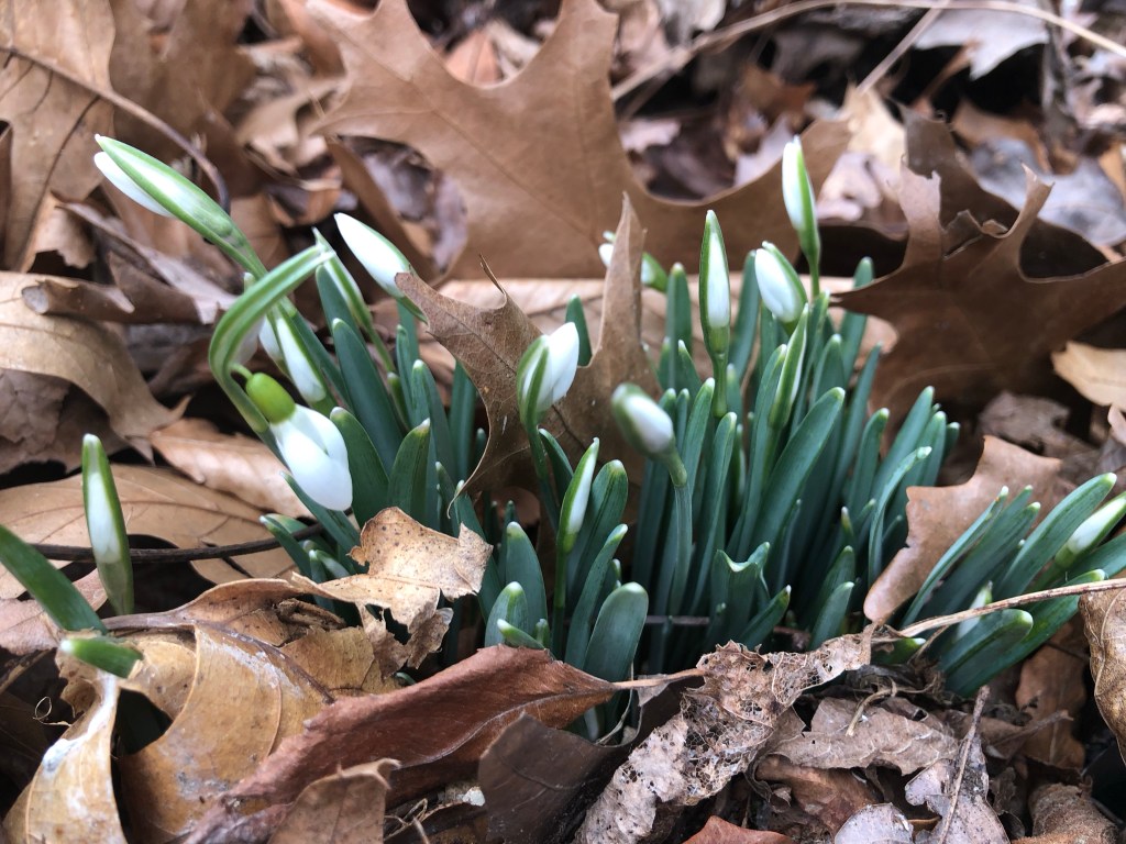 It’s been a weird February so far. This week it was over 50°one day and over 60° the next. I want to know where the Februarys full of snow have gone? There have been some cold days, but then it warms up. I have bulbs poking out all over. Once again, I lament climate change.