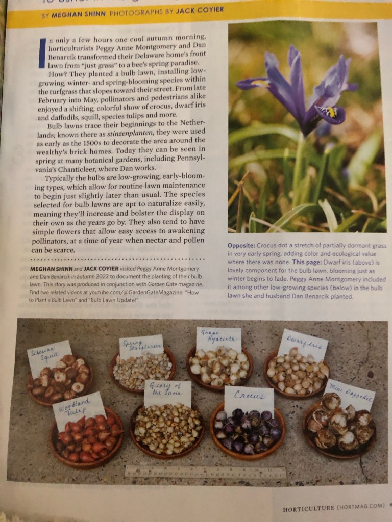 Now the reason I planted so many bulbs again is because I’m creating sort of a bulb lawn for what one I have left, which is not much. It’s mostly planted now. I am creating a Stinzenplanten lawn. Here is something I literally ripped out of Horticulture Magazine: