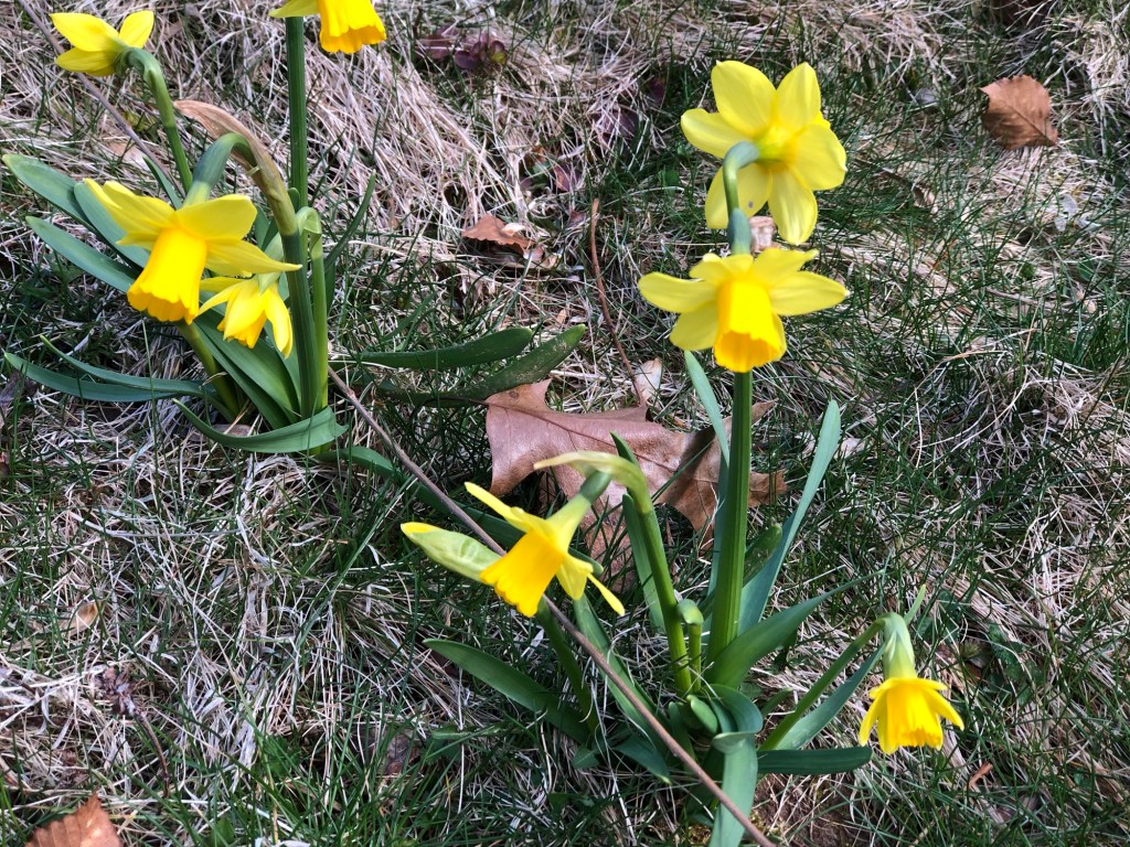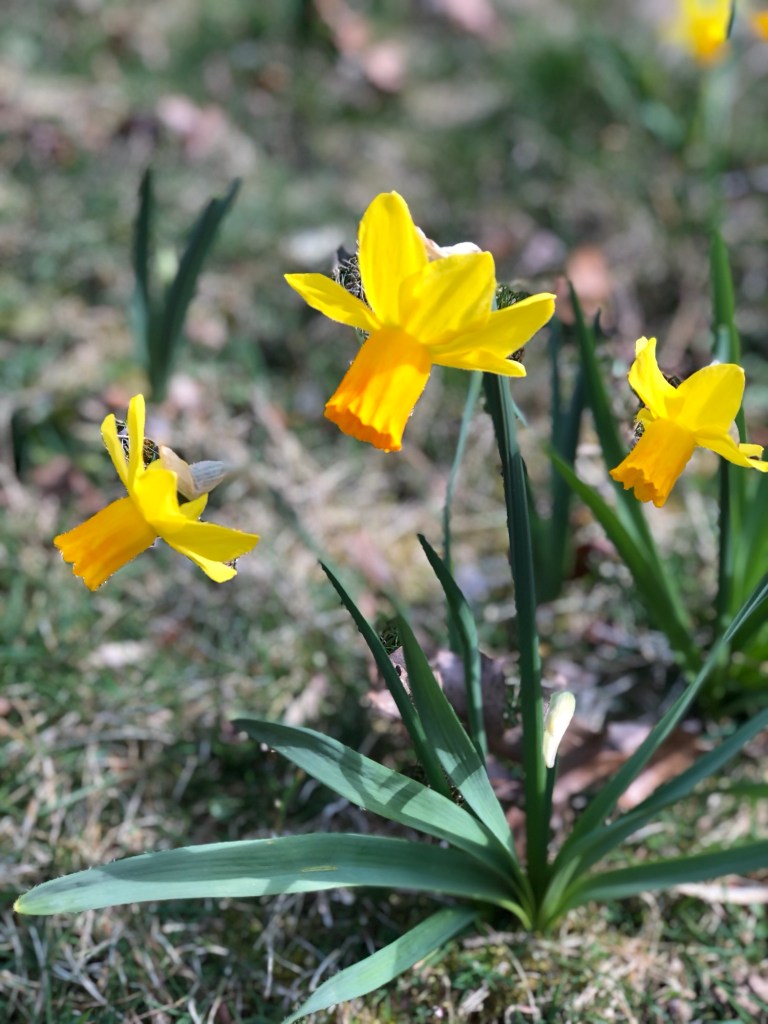 I have been out in the garden and one of the things I am loving or the daffodils coming up in the lawn. You see, I have been working on a stinzenplanten lawn (also known as a stinzen garden or more simply a stinze.)