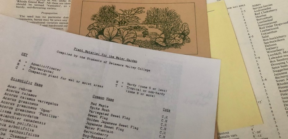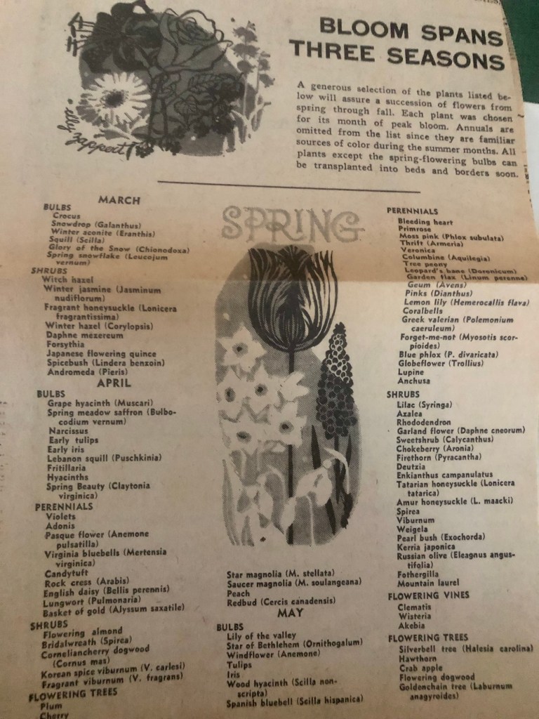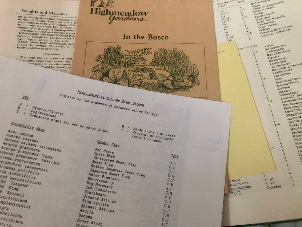 Along with these big gardening volumes tucked in amongst the pages are handmade lists in her handwriting, little calendars that I assume are bloom times for all of her plants, but I haven’t looked at everything yet, and articles from various publications and clippings and brochures. It’s a gold mine of gardening information.