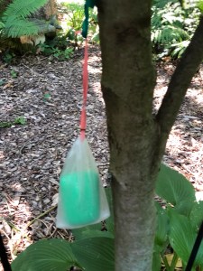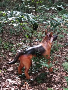 The deer have been eating things they’ve never touched. And I’m spraying but losing a good month because of the Mohs surgery meant they came in. So now I have been doing things like solar charged little flood lights that are motion detected and then I have these giant plastic German Shepherd’s that are blowup dogs. And Irish Spring soap in these cute little shower bags I found. That way I have the entire bar in each bag and they last longer.