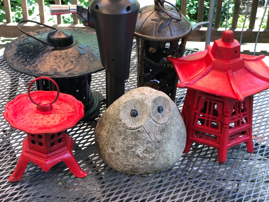Another fun gardening news that actually is fun, I found some more of those little cast iron Japanese lanterns. I love at the Smithfield Barn. and these are unusual for me to find because they are actually smaller than a lot of the other ones I have so they fit nicely on a table.