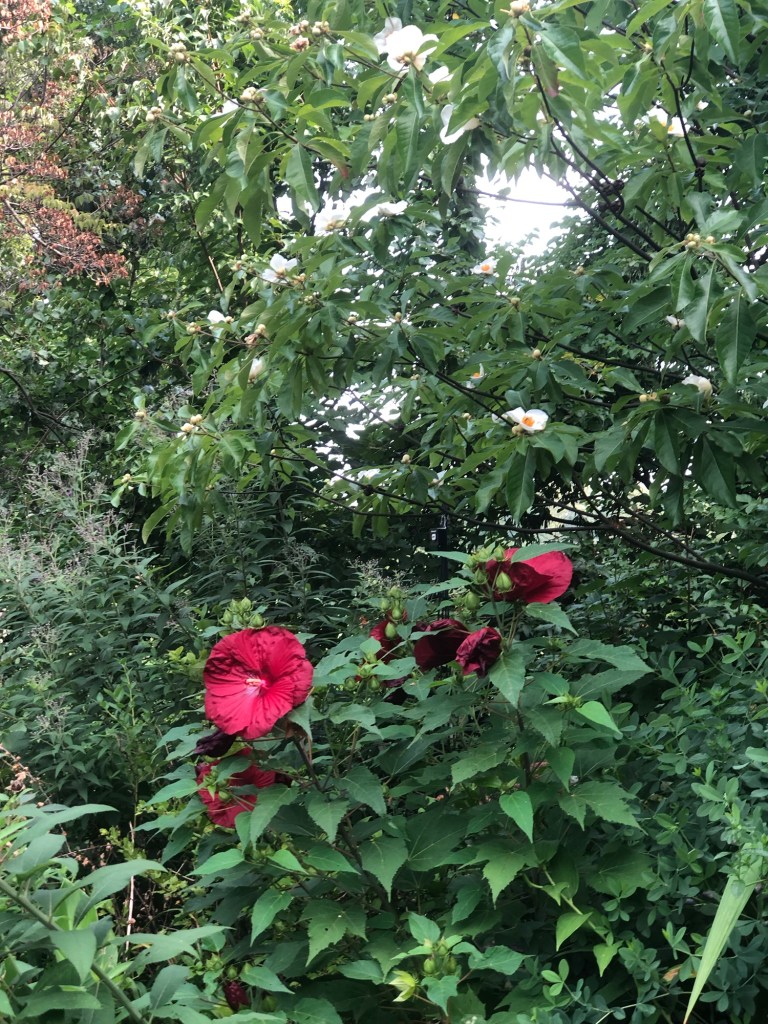 This summer is one of those seasons, where if people don’t believe in climate change, they need their heads examined. The heat has been unrelenting, and the rain has been sporadic than fierce so it’s not really getting into the ground. I have lost some beautiful, deciduous azalea’s one that was pale pink and reminded you of Pinkster but I don’t think that’s what it was. oh, and did I mention the deer tried to eat a Gordlinia tree ? I am hoping this tree will survive. It didn’t get completely eaten.