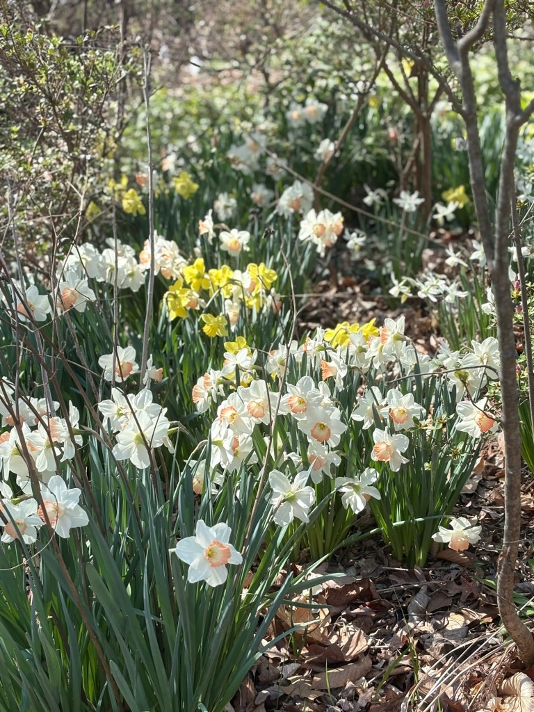 The late season daffodils are now starting to revel in their glory, and a lot of the others are fading. I have been deadheading the daffodils, although I do not cut down the greens. I do cut off the spent blossoms. The greens of the bulbs? Well I just let do their thing until they fade and dry up on their own. If I cut them, the bulbs don’t feed for next year.