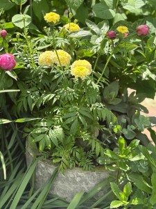 I have planted a lot of my pots and still doing mostly herbs. And some marigolds. BloomBox had gotten these really cool white/cream marigolds and I bought some to add to a couple of pots. And I am not normally a marigold person!