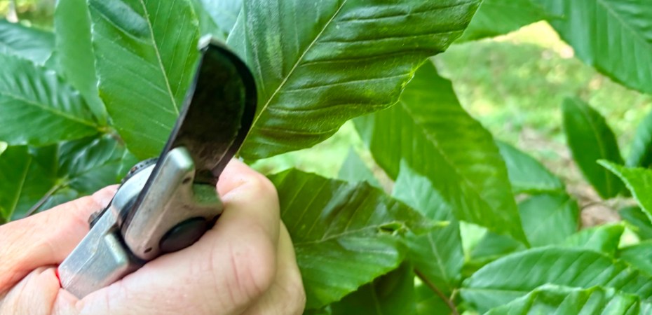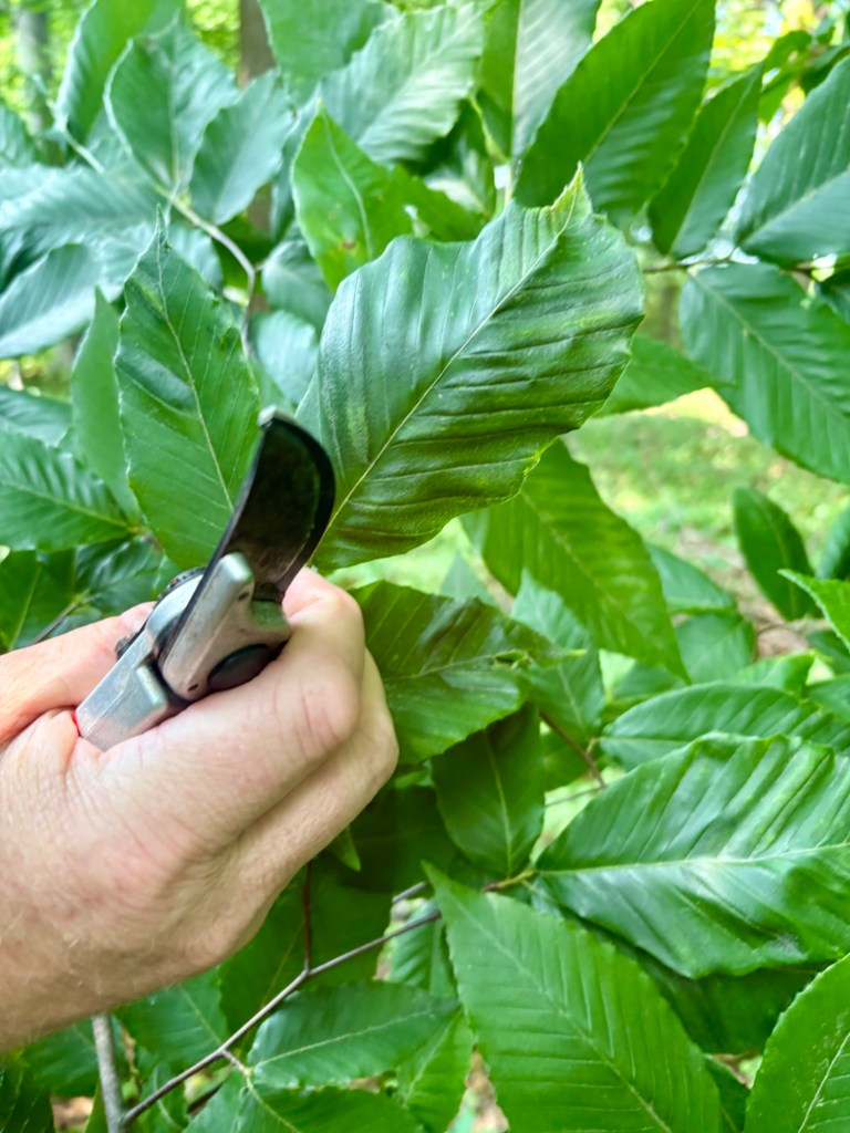 Sigh….being the stewards of our woods is a big deal, but not always fun. Today on one side of the woods my fears have been sadly validated. I feared some of beech trees had funky wilty leaves meaning beech leaf disease.