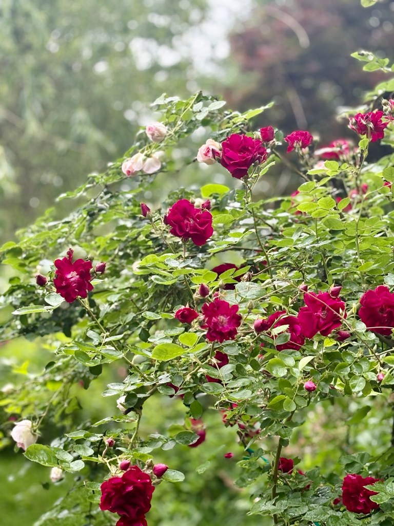 I read somewhere that Dr. Huey is inadvertently one of the most grown roses, but it’s never by anyone’s choice or rarely by anyone’s choice. I noticed that when I was driving through Wayne Pennsylvania, a couple of weeks ago. Huey was everywhere.