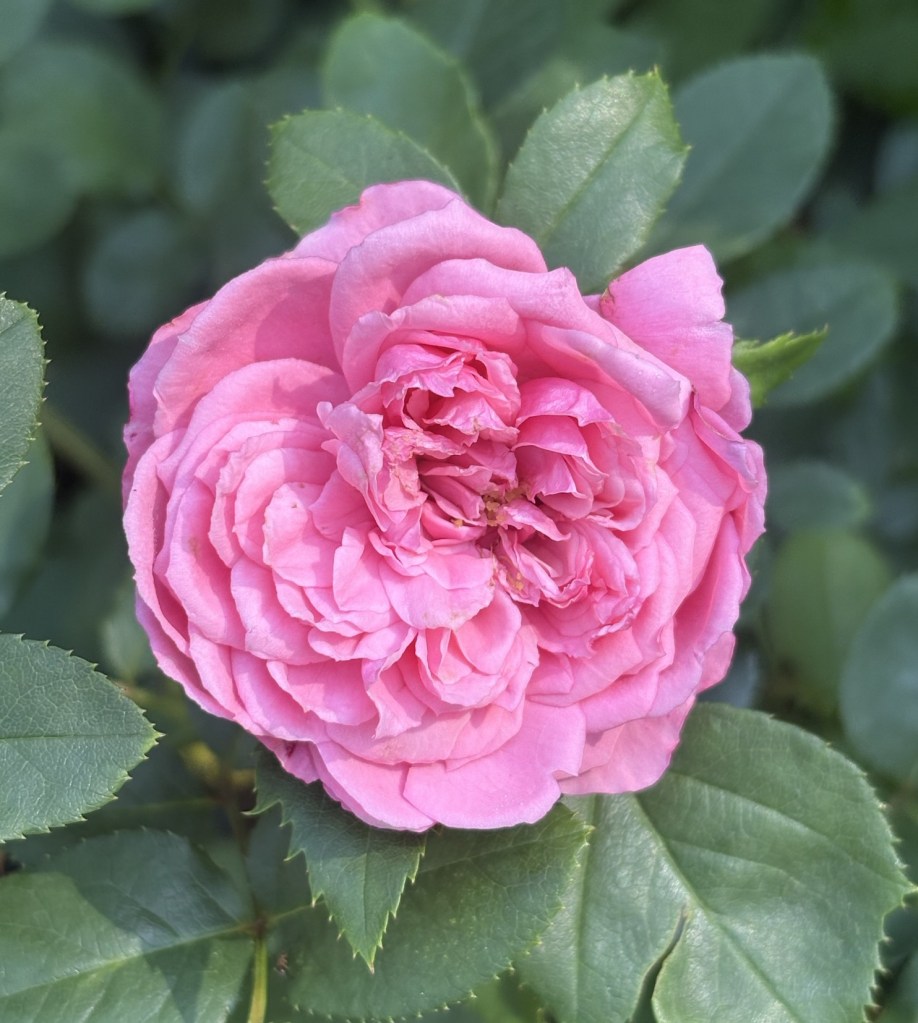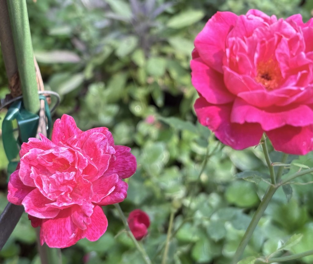 I always forget that this garden has more roses than I think it does, so it takes a while to feed them. Plus, I did plant four new rose bushes this year. Slowly, I have found myself switching over to antique roses. I still have a lot of of David Austins and I have one grandiflora, which is Queen Elizabeth. I also have an Eden Climber which is a Meilland rose which has a puffy old fashioned habit introduced in 1985.
