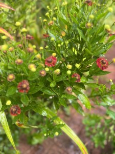 But the delightful end of summer flowers like the dinner plate hibiscus, and the giant rudbeckia I love, and my husband does not are blooming. And I have a pretty good patch of zinnias going. I also have Crocosima and a couple of patches of Gaillardia or Blanket Flowers. One patch of Gaillardia is sort of a deep red and the other patch is sort of a rust orange. They’re really quite pretty.