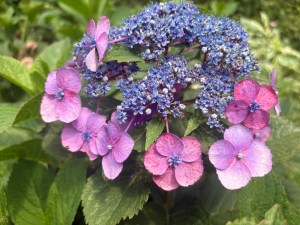 I have been pruning things more than once in a couple of cases. However, now I see azaleas starting to set for next year, so there’s some that I can’t trim that I should have. I have really trimmed back some hydrangeas in a couple of cases because it got so warm so early after the weird cold spring that on some of the lace caps, for example, the flowers aged and browned out more quickly. A couple of hydrangeas have rewarded me like “tough stuff” by starting to bloom again.